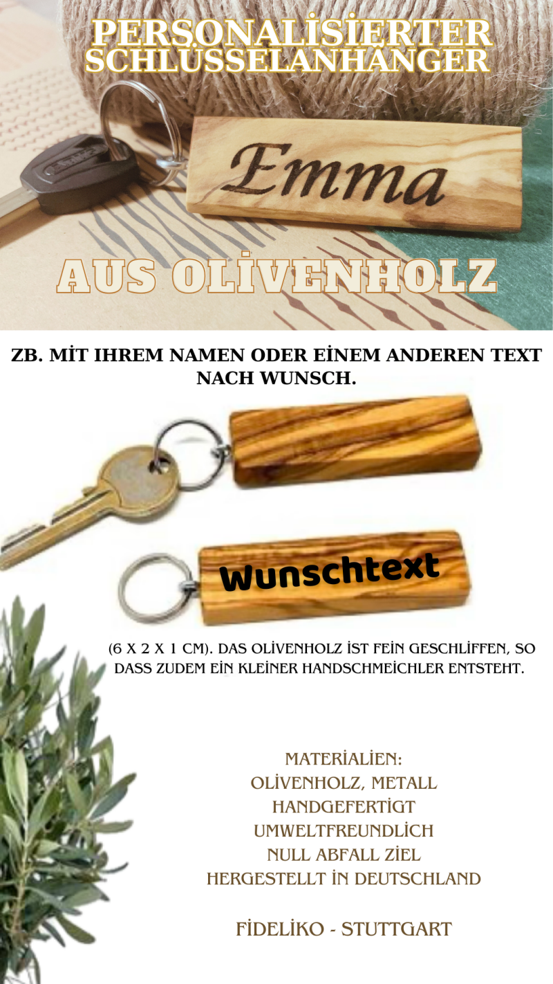 - PERSONALISIERUNG: Individuell gestaltete Schlüsselanhänger aus hochwertigem Olivenholz mit Wunschtext oder Namen nach Ihrer Wahl